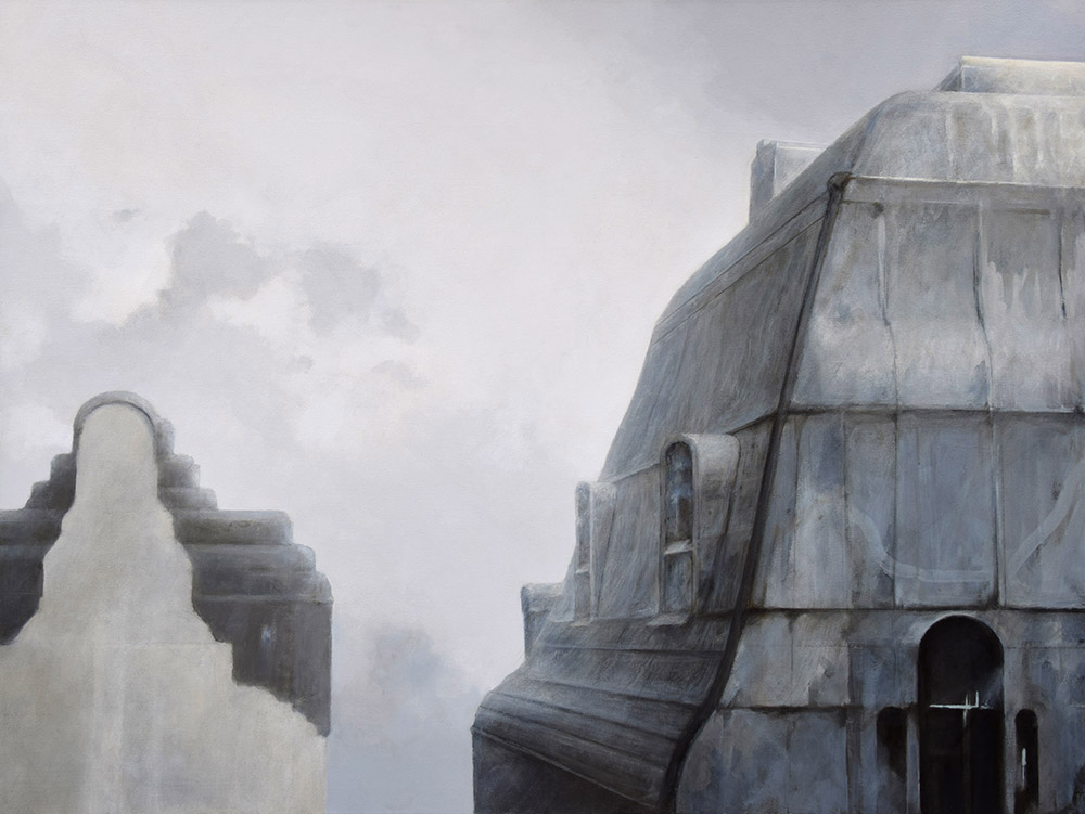 Kattomaisema / Rooftop landscape 2017, Akryyli kankaalle / Acrylic on canvas, 120x160 cmJyväskylän taidemuseon kokoelma / The Art Collection of the Jyväskylä Art Museum